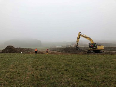 Anfang November 2020 begann eine archäologische Untersuchung in Kreuzholzen. Im Zuge der Erweiterung des Bentonitabbaus mussten die zukünftigen Abbauflächen im Vorfeld archäologisch untersucht werden. Zur genaueren Beurteilung der Flächen wurde die Anlage von acht Sondagen beauftragt. Schon in den ersten Schnitten zeigte sich ein ganz ähnliches Bild wie in den Ausgrabungen 2017 in der Nachbarfläche mit bisher hauptsächlich eisenzeitlichen Spuren.