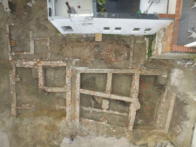 Auf der bis dato freigelegten Teilfläche kamen Fundamentreste zweier durch Traufgassen getrennter Bürgerhäuser zutage, die möglicherweise bis in das späte Mittelalter zurückreichen und in der Frühen Neuzeit mehrfach umgebaut und erweitert wurden. Sicher spätmittelalterlich sind mehrere unter den Backsteinmauern sichergestellte Öfen und Feuerstellen, ganz ähnlich den Strukturen, die bereits in der Sondage 2019 auf dem Plan entdeckt wurden. Die ältesten bislang aufgedeckten Befunde, darunter auch Keramik und Speisereste wie Getreide und Fischgräten, datieren in das Hochmittelalter. Die Untersuchung wurde 2021 fortgesetzt.