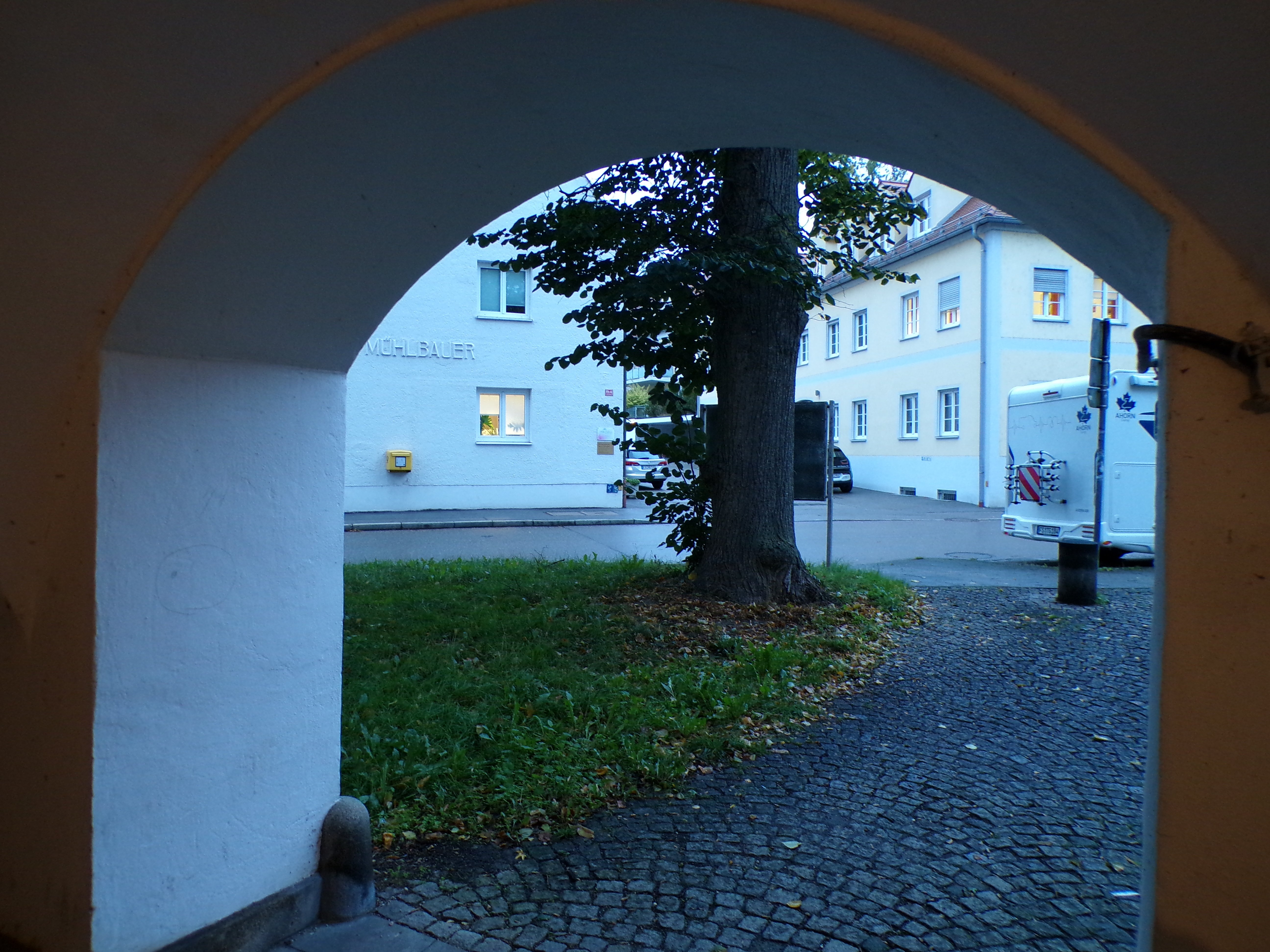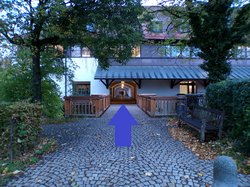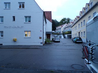 Nach dem letzten Treppenaufgang ist das ‘Mühlbauerhaus’ bereits auf der gegenüberliegenden Straßenseite sichtbar.