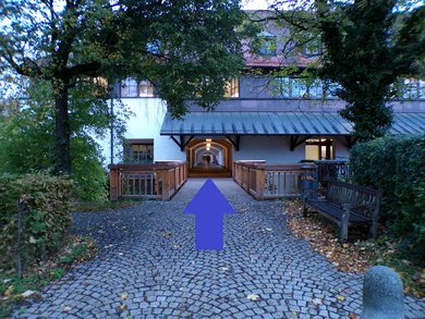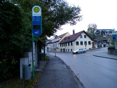 Nutzen Sie die Haltestelle ‘Landratsamt’, wenden Sie sich nach Westen und folgen Sie dem Verlauf der Alten Poststraße. Das Mühlbauerhaus befindet sich auf der rechten Straßenseite.