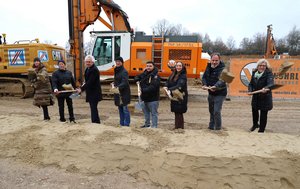 Am 26. November setzte Landrat Helmut Petz zusammen mit Oberbürgermeister Tobias Eschenbacher, weiteren am Bau Beteiligten und Vertretern der Schülerschaft den ersten Spatenstich.