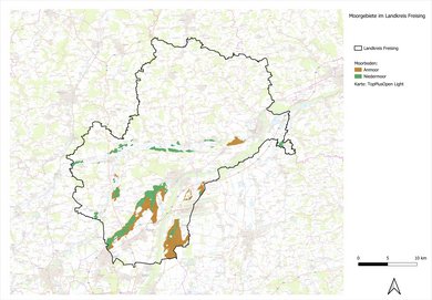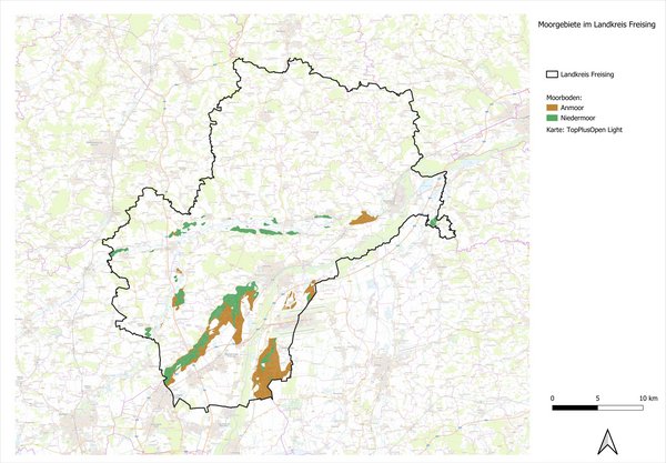 Aufgrund des Torfabbaus und der Entwässerung in den letzten Jahrhunderten sind heute mehr als 95% der bayerischen Moore stark geschädigt oder sogar zerstört. Dies ist auch im Landkreis Freising der Fall. Bei bewirtschafteten Flächen fällt auf, dass sie meist niedriger liegen als die nicht bewirtschafteten. Das liegt daran, dass sich der Boden durch die Durchlüftung schneller zersetzt.