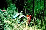 Nach Ausbau der wertvollen Teile wurden diese Karosserien einfach über die Böschung geschoben.