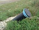Die gelochten Sickerwasserrohre leiten die am Boden der Deponie sich ansammelnde Flüssigkeit zu den Sickerwasserschächten. Die Rohre wurden am Boden der Deponie verlegt und an den Seiten bis zum Rand hochgezogen. Von hier aus werden die Rohre gereinigt und mit einer Videokamera überwacht.
