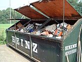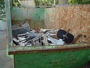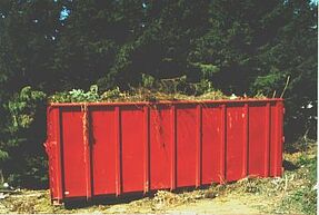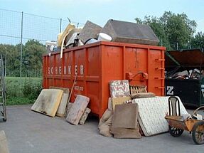 Sperriger Müll, der nicht in die Mülltonne passt, wird in einem Container auf dem Wertstoffhof erfasst. Die Matratzen werden zur Abdeckung des Containers benutzt.