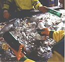 Vor der weiteren Verarbeitung müssen Müll und Plastiktüten von Hand aussortiert werden.