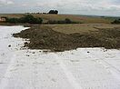 2) Darüber wird ein Geotextil gelegt. Es verhindert, dass Lehm in die gasgängige Ausgleichsschicht gelangt.