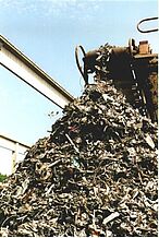 In der Fa. Thyssen in Ebenhausen wird der Schrott in einer speziellen Mühle (Shredder) zerkleinert.