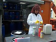 Bei der Anlieferung untersuchen chemische Fachkräfte bei Unklarheiten den Inhalt der Gefäße.