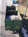 Die Ladefläche des LKW's, mit dem die Entleerung durchgeführt wird, ist in der Mitte abgetrennt. Das Glas wird nach Weißglas und Grünglas getrennt. Braunglas wird separat abgefahren.