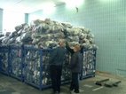 Die Federbetten werden zu Ballen gepresst und in Ungarn wiederaufbereitet.