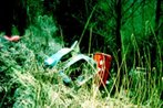 Nach Ausbau der wertvollen Teile wurden diese Karosserien einfach über die Böschung geschoben.