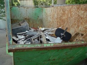 Sperriger Müll, der nicht in die Mülltonne passt, wird in einem Container auf dem Wertstoffhof erfasst. Die Matratzen werden zur Abdeckung des Containers benutzt.