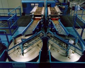 Vor dem Einschmelzen müssen Fehleinwürfe aus dem Glas aussortiert werden. Im Bild wird gerade Glas bei einer Sortieranlage angeliefert.