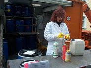 Bei der Anlieferung untersuchen chemische Fachkräfte bei Unklarheiten den Inhalt der Gefäße.