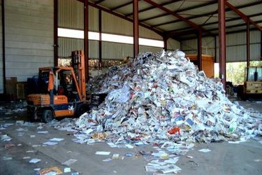 Das in den Papiercontainern gesammelte Papier wird sortiert und dann bei der Herstellung von neuem Papier wieder eingesetzt.