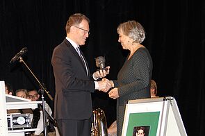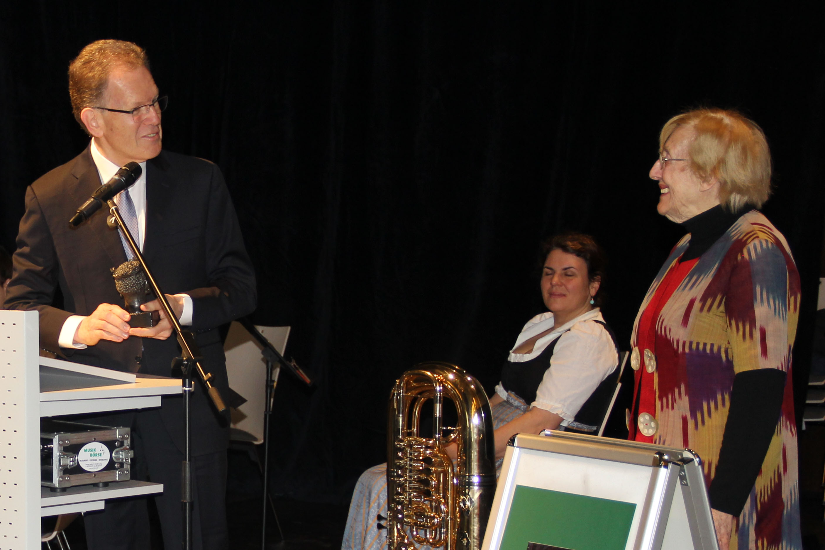 Landrat Josef Hauner übrreicht Gisela Landesberger ihren Mohren
