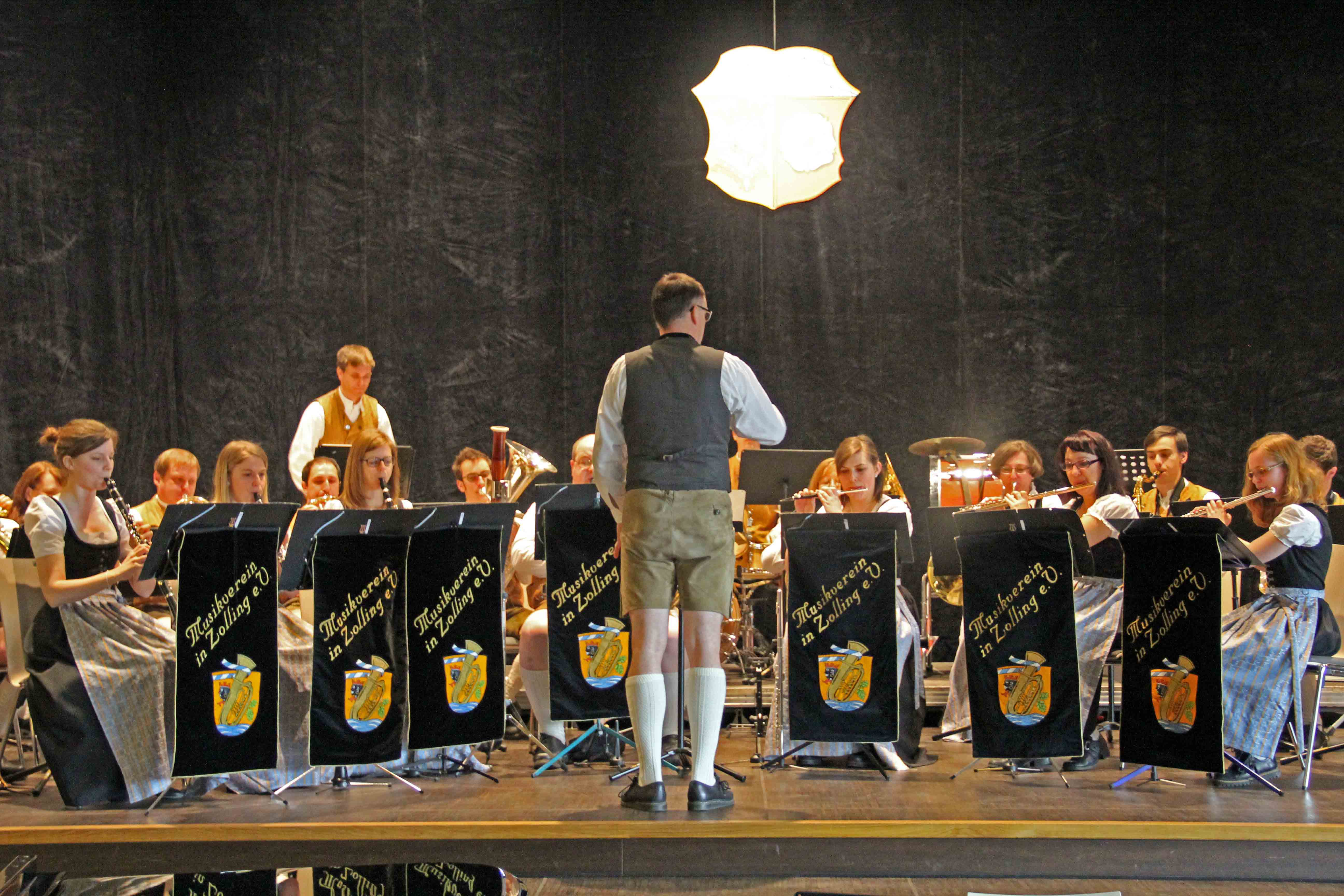 Landrat Josef Hauner freute sich mit Franz Donauer und seinen Mitgliedern vom Musikverein in Zolling