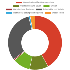 Die Themen reichten von Hochwasserschutz über Hitzeschutzmaßnahmen bis hin zu naturnahen Gestaltungswünschen. Dreiviertel der Beiträge entfielen auf die Kategorien „Gesundheit und Bevölkerungsschutz“ sowie „Infrastruktur und Verkehr“.