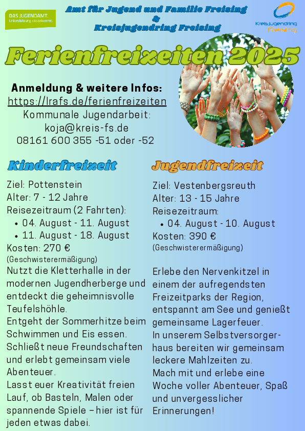 Ferienfreizeiten des Amts für Jugend und Familie in Kooperation mit dem KJR Freising