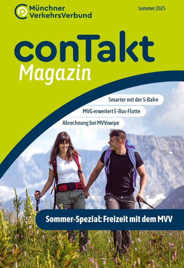 Im MVV-Kundenmagazin conTakt finden Sie aktuelle und ausführlichere Informationen zu Änderungen und Neuerungen im MVV-Netz und Tipps für die Freizeitplanung in München und Umgebung.