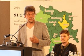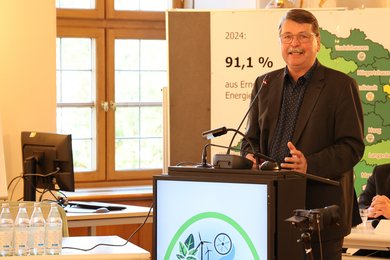 Der Energiewendebeschluss aus dem Jahr 2007 sei „zukunfts- und richtungsweisend“ gewesen, betonte der Landrat. Und in den vergangenen Jahren seien alle Beteiligten „mit großem Enthusiasmus herangegangen. Ob Bürgerinnen und Bürger, Unternehmen oder Gemeinden: „Alle haben sich richtig reingehängt. Danke, dass alle so gut zusammenarbeiten.“ Der Landkreis, der aufgrund fehlender Zuständigkeiten in dem Bereich sehr begrenzte Handlungsmöglichkeiten habe, trete mehr als Moderator und Berater auf. Sehr wichtig sei jedoch der Beschluss des Kreistags gewesen, Landschaftsschutzgebiete für den Bau von Freiflächen-PV-Anlagen zu öffnen. „Wenn das nicht passiert wäre, dann wären wir heute bei der Photovoltaik lange nicht so weit“, sagte Henze.