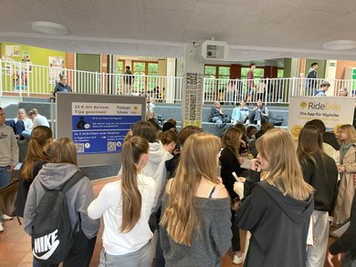 Zum Auftakt wurden die Schülerinnen und Schüler sowie die Lehrkräfte von Mitarbeiterinnen des Landratsamtes und des App-Herstellers RideBee in den jeweiligen Schulen vor Ort über die Funktionen und Vorteile der App informiert. Neben praktischen Tipps zur Nutzung sorgte ein Gewinnspiel für zusätzlichen Andrang am Infostand und viel gute Stimmung.