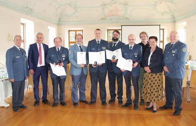 Für ihre langjährige Dienstzeit beim Technischen Hilfswerk Bayern hat Staatsminister Joachim Herrmann fünf Mitgliedern des THW Freising das Ehrenzeichen am Bande verliehen. Seit 25 Jahren sind Dustin Greib aus Freising und Jonas Podlinski aus Wartenberg bei der Organisation ehrenamtlich aktiv und erhielten für dieses Engagement das Silberne Ehrenzeichen. Als Dank und Auszeichnung für 40 Jahre Dienst beim THW bekamen Dr. Gerh