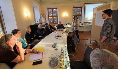 Die konkreten Einzelprojekte werden in fachlich besetzten Arbeitsgruppen zu den Themen Verkehrsberuhigung, Öffentlicher Personennahverkehr (ÖPNV), Mobilitätsknoten, innerörtliche Radnetze sowie Raum- und Verkehrskonzept 2040 erarbeitet. Nach der Vorstellung der einzelnen Gruppen waren die Gäste am Dienstag eingeladen, die vorgestellten Themenbereiche im World-Café-Format zu diskutieren. „Da war viel Bewegung im Raum, viel Diskussion, viel Interesse an den neuen Themen der Mobilität. Wir haben unser Ziel für heute erreicht: viele Menschen in das Thema mitnehmen“, fasste Schwieger begeistert zusammen.
