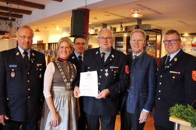 Er habe sich „immer weitergebildet, sich auch das Ende seiner Amtszeit nicht leicht gemacht und sich mit dem komplizierten Feuerwehrbedarfsplan befasst“, sagte sie in ihrer Laudatio über den Feuerwehrmann, der etwa drei Jahrzehnte erster Kommandant und zuvor schon sechs Jahre zweiter Kommandant war.