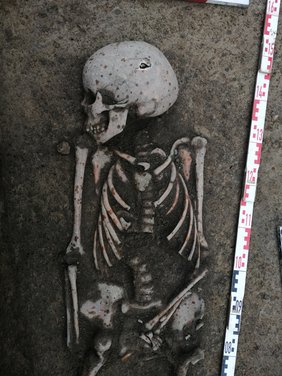Die Entdeckung und Dokumentation der Bestattung ist der baubegleitenden, archäologischen Untersuchung zu verdanken. Im Akkord werden dabei zwischen den zügig voranschreitenden Bauarbeiten Befunde freigelegt, dokumentiert, gezeichnet, fotografiert und Funde sachgerecht geborgen. Die Zusammenarbeit zwischen Baggeraushub, archäologischer Dokumentation, Bergung, Verlegung der Wasserleitung, Verfüllung und Verschluss des Schachtes läuft dabei wie am Fließband.