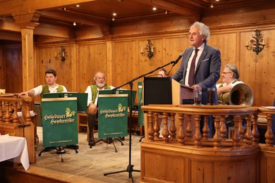 Immer häufiger suchten schwere Unwetter auch den Landkreis Freising heim, sagte der Landrat rückblickend: Er erinnerte an die Verwüstungen, die die Stürme im Juni 2022 und im August 2023 hinterlassen hatten. Und zuletzt im Juni dieses Jahres hatten tagelange Regengüsse ganze Ortschaften im Landkreis unter Wasser gesetzt. „Heute sind wir hier am Ort des Geschehens“, sagte Petz während der Feierstunde im Fuchswirt in Allershausen – neben Hohenkammer eine der am heftigsten von den Fluten betroffenen Gemeinden. Allein 2700 Feuerwehrkräfte hatten in den sechs Tagen, an denen der Katastrophenfall ausgerufen war, rund 700 Einsätze in mehr als 30.000 Stunden abgearbeitet. „Dieser Katastrophenfall hat wieder einmal eindrucksvoll gezeigt: Unser Katastrophenschutz funktioniert, jeder Handgriff sitzt.“
