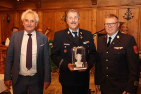Eine besondere Ehrung ließen Landrat und Kreisbrandrat dem langjährigen Kreisbrandmeister Michael Hinterholzer zukommen. Nach fast 50 Jahren im aktiven Dienst war Hinterholzer im Juli nach Erreichen der Altersgrenze ausgeschieden und wurde nun offiziell verabschiedet. Für seine Verdienste – er war unter anderem neun Jahre lang Kreisbrandmeister im Abschnitt Dietersheim, Eching, Fahrenzhausen, Günzenhausen, Jarzt-Appercha, Lauterbach und Weng sowie zwölf Jahre lang Vorsitzender des Kreisfeuerwehrverbandes – erhielt er von Landrat Petz einen Mohren aus Porzellan, „eine der höchsten Auszeichnungen, die wir vergeben“, so Petz. „Ich danke euch für die vielen schönen Jahre. Ich habe eine tolle Kameradschaft erleben dürfen“, sagte der Geehrte. Kreisbrandrat Danner ernannte Hinterholzer zum Ehrenkreisbrandmeister.