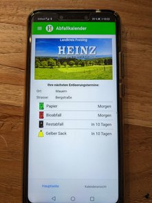 Noch etwas mehr Komfort bietet die App „Abfallkalender Freising“ für das Handy. Die App ist für Android und iOS-Geräte verfügbar und steht im App Store oder Play Store kostenlos zum Download bereit. Damit hat man nicht nur Zugriff auf einen Kalender mit den Abfuhrdaten in der eigenen Straße. Mit der integrierten Erinnerungsfunktion verpasst man auch keinen Termin mehr.