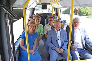 „Die Menschen aus Buch fahren gern nach Moosburg und haben hier den Anschluss an Freising und München. Und die Moosburger fahren gern ins Gewerbegebiet Degernpoint“, so die erfreuliche Zwischenbilanz von Landrat Petz. Das konnten die anwesenden Bürgermeister nur bestätigen. „Wir sind froh und glücklich über diese Verbindung nach Moosburg“, sagte Elisabeth Winklmaier-Wenzl, Rathauschefin aus Buch am Erlbach. Vor allem, weil die Bürgerinnen und Bürger aus Buch „sehr nach Moosburg orientiert sind“. Für die Dreirosenstadt sei die Linie 687 eine „Win-Win-Situation“, betonte Moosburgs dritter Bürgermeister Dr. Michael Stanglmaier. Ältere Menschen, die ohne Auto zum Einkaufen wollen, profitierten insbesondere von der Anbindung ans Gewerbegebiet Degernpoint. Außerdem sei der Ortsteil Aich nun an den ÖPNV angebunden. „Und wenn weniger Menschen aus Wang und Buch mit dem Auto nach Moosburg fahren, dann reduziert sich bei uns zusätzlich die Verkehrsbelastung.“ Der Wanger Bürgermeister freut sich besonders über die Routenführung, die über Degernpoint, Volkmannsdorf und Wang führt, und bei der nächsten Fahrt fährt der Bus die Strecke andersrum. „Genau so haben wir uns das gewünscht.“