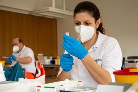 Um 12.30 Uhr hatten die Helfer der BRK-Bereitschaft schon 1000 Impfdosen vorbereitet und aufgezogen. Sechs Ärzte verabreichten den Impfwilligen die Spritzen, bei der Dokumentation wurden sie von Freiwilligen des THW Freising unterstützt. Und in der Turnhalle der Schule hatten die Johanniter einen Wartebereich eingerichtet, in dem die „Patienten“ nach der Impfung noch etwa 15 Minuten überwacht wurden. Mittagspause gab es keine. Die Helfer und Ärzte machten zwischendrin nur abwechselnd Kurzzeitpausen, in denen sie vom Verpflegungsteam des BRK versorgt wurden.