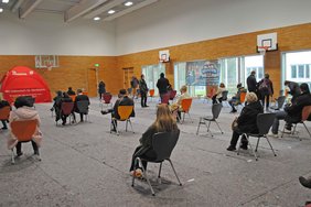 Schon um 5.30 Uhr morgens standen die ersten Impfwilligen vor der Eingangstür der Realschule. „Um 6 Uhr war die Bude voll“, erzählt Stefan Anneser, Einsatzleiter des Roten Kreuzes. Von 6 bis 20 Uhr waren Termine vergeben worden, insgesamt 2166. Zwischendurch sagten manche ihren Termin ab, andere buchten diese wieder und einige kamen auch spontan vorbei. Wenn es organisatorisch möglich war, wurden diese reingeschoben. So wie zum Beispiel ein Müllfahrer, der sich quasi beim Vorbeifahren impfen ließ. „Und um 20.15 Uhr ist noch ein Spaziergänger gekommen, der sich schnell boostern lassen wollte.“