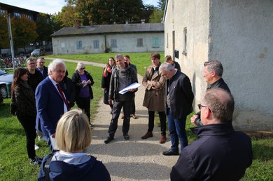 Landrat Helmut Petz und Moosburgs 1. Bürgermeister Josef Dollinger haben bei einer gemeinsamen Ortsbesichtigung die Bedeutung der noch erhaltenen Gebäude des ehemaligen Kriegsgefangenenlagers Stalag VII A hervorgehoben. Gemeinsam mit Vertreterinnen und Vertretern des Bayerischen Landesamts für Denkmalpflege (BLfD), der Deutschen Stiftung Denkmalschutz (DSD), des Planungsbüros Kayser+Böttges/Barthel+Maus Ingenieure und Architekten, des Vereins Stalag Moosburg e.V. sowie des Landratsamts Freising machten sie sich vor Ort ein Bild vom Zustand der ehemaligen Wachmannschaftsbaracken in der Schlesierstraße und der sogenannten Sabathiel-Baracke in der Egerlandstraße in der Moosburger Neustadt.