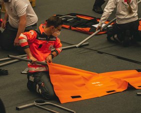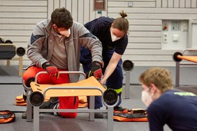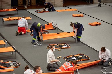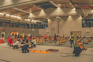 Hand in Hand arbeiteten die Ehrenamtlichen der Hilfsorganisationen, um die Sporthalle in eine Notunterkunft für Flüchtlinge zu verwandeln. (Fotos: THW Freising)