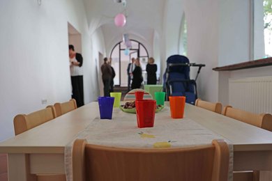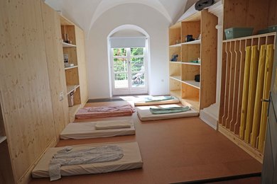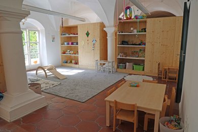 Im Erdgeschoss der Klosterbibliothek war zuvor das Medienzentrum untergebracht, das inzwischen in andere Räume umgezogen ist. Im Februar hatte der Kreistag beschlossen, dort eine Großtagespflege einzurichten, vorausgegangen war ein Antrag der Freisinger Linken auf Übernahme der Betreuungskosten für Beschäftigte des Landratsamts. „Die Idee haben wir aufgegriffen und weiterentwickelt“, sagte Petz. Daraus entstand der Gedanke, lieber Betreuungsplätze zu schaffen, von denen in Teilen des Landkreises ohnehin zu wenige vorhanden sind. Die Räumlichkeiten wurden generalsaniert, ein neuer Zugang auf der Südseite geschaffen, ein Außenbereich angelegt. Ein Augenmerk legten die Planer des Sachgebiets Hochbau auf Ressourcenschonung. Es wurde eine gebrauchte Küche eingebaut, ebenso wie selbstgebaute Garderobenmöbel und ausrangierte, aber funktionstüchtige Lampen.