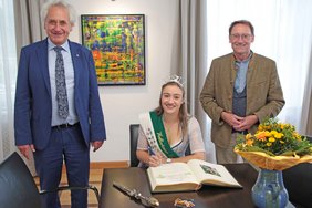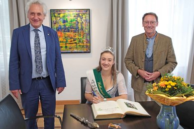 „Ich gratuliere Ihnen persönlich und im Namen des Landkreises Freising herzlich zu Ihrer Wahl“, sagte Landrat Helmut Petz nun anlässlich eines Besuches der Hopfenkönigin im Landratsamt. „Es ist toll, dass wir eine Bürgerin aus unserem Landkreis als Hopfenbotschafterin in die Welt hinausschicken dürfen.“