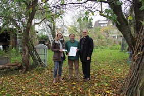 Wie kann ich meinen Garten schön gestalten und gleichzeitig etwas für die Artenvielfalt tun. Johann Seidl aus Freising hat sich da so seine Gedanken gemacht – und diese auch umgesetzt. Das kann man jetzt an seinem Gartentor lesen. „Naturgarten“ steht auf einer Plakette geschrieben. Seidl ist der erste Gartenbesitzer im Landkreis Freising, dessen Garten jetzt von Landrat Josef Hauner und der Kreisfachberaterin für Gartenbau und Landespflege, Anja Aigner, zertifiziert wurde. Sie überreichten ihm kürzlich die entsprechende Urkunde.