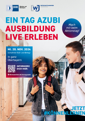 Das gemeinsame Projekt der IHK für München und Oberbayern und der Wirtschafts-junioren gibt jungen Menschen realistische Einblicke in den Arbeitsalltag eines Unternehmens und zeigt ihnen hautnah die vielfältigen Möglichkeiten und Chancen einer Ausbildung in der Region. Im Vorjahr nahmen in ganz Oberbayern mehr als 700 Schülerinnen und Schüler sowie mehr als 400 Betriebe am Aktionstag teil. Das Mindestalter für die Teilnahme ist 13 Jahre.