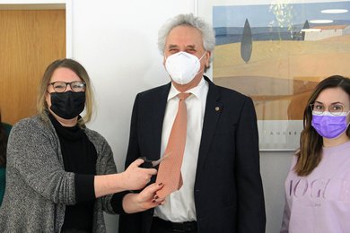 Doch Corona bedingt waren heuer keine aufwendig, nach einem bestimmten Motto gestalteten Kostüme in der Zulassungsstelle zu sehen. Auch die Luftballons und Luftschlangen waren für den sonst gewohnten kunterbunten Anblick kein richtiger Ersatz. Für ein ganz kleines bisschen Spaß musste dann aber wenigstens die Krawatte des Landrats Helmut Petz herhalten.