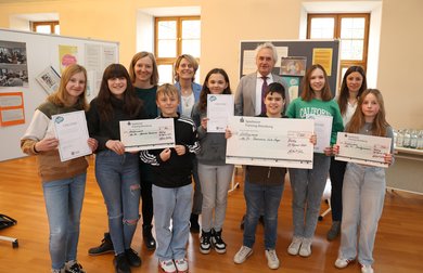 Die Resonanz war enorm. „Es haben sich über 40 Klassen mit tollen Ideen am Wettbewerb beteiligt“, freute sich Christiane Malecki, Schulkoordinatorin des Landkreises Freising. Unter allen Einsendungen wurden drei Preise verlost: 1.000 Euro, 800 Euro und 500 Euro für die Klassenkasse. In dieser Woche fand nun die Siegerehrung im Großen Sitzungssaal des Landratsamtes statt.