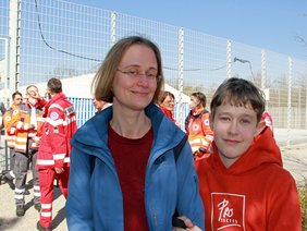 Bild1: Der wohl jüngste Dolmetscher im Einsatz war der 13-jährige Lukas Schneider (r.), der mit seiner Mutter Elena Schneider (l.) in Moosburg und Eching beim Übersetzen half.