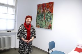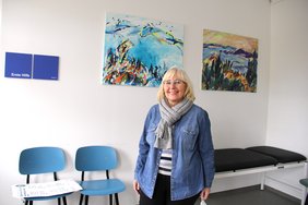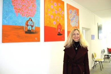 „Mein Motto ist „Kunst kann Seelen zum Lächeln bringen“. Mit meiner positiven, farbenfrohen und fantasiereichen Kunst möchte ich dazu beitragen, dass sich Menschen, die in das Impfzentrum kommen, beim Betrachten der Bilder ein wenig ablenken und vor allem auch positive Emotionen empfinden. Vielleicht kann meine Kunst bei dem einen oder anderen sogar ein Lächeln hervorzaubern.“