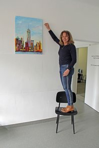 „Es sind so viele Ausstellungen im letzten Jahr ausgefallen“, sagt Renate Vogt. „Daher freuen wir uns umso mehr, dass wir endlich unsere Werke zeigen können.“ Vogt hatte die Ausstellung konzipiert und die Hängung in Zusammenarbeit mit dem Landratsamt abseits der Betriebszeiten im Impfzentrums umgesetzt, um die dortigen Abläufe nicht zu stören.
