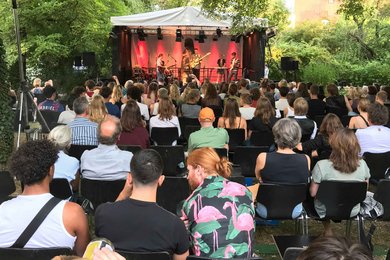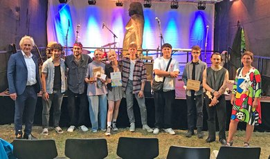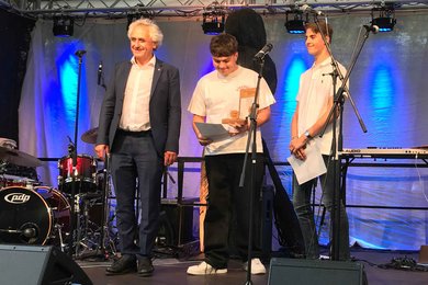 Zuletzt wurde die Band June Calls geehrt – eine neue, junge, sympathische Band, bestehend aus Izabelle und Lukas mit Gitarre und Gesang, Yanice mit E-Bass und Gesang, Jakob am Schlagzeug und seit ein paar Monaten neu dabei, Linda am Keyboard. Nach den Anfängen mit Cover-Songs im ersten Corona-Sommer, hat sich viel verändert. Die Band hat eigene Songs aufgenommen, mit viel Stimmung und Feingefühl, aber auch mit Power, die ansteckt. Die Richtung bewegt sich zwischen Rock, Pop und Indie. Mittlerweile hat die Band auch Bühnenerfahrung gesammelt und eine eigene Fangemeinde. Im Oktober treten sie im Lindenkeller auf. Im Amtsgerichtsgarten konnten sie das Publikum jedenfalls überzeugen.