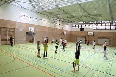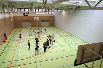 Nach dem Abbruch der Turnhalle bis auf den Rohbau ist nun eine zeitgemäße, vielseitige Sportstätte entstanden, die nicht nur den Realschülern, sondern auch Vereinen viel Freude und hervorragende Trainingsmöglichkeiten bereiten wird. „Das ist alles sehr gelungen hier“, freute sich Landrat Helmut Petz.